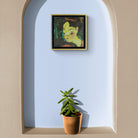Mixed media, 20 x 20 cm original painting finished in a custom, hand-made, wood box frame (no mount) with a gold & black finish.