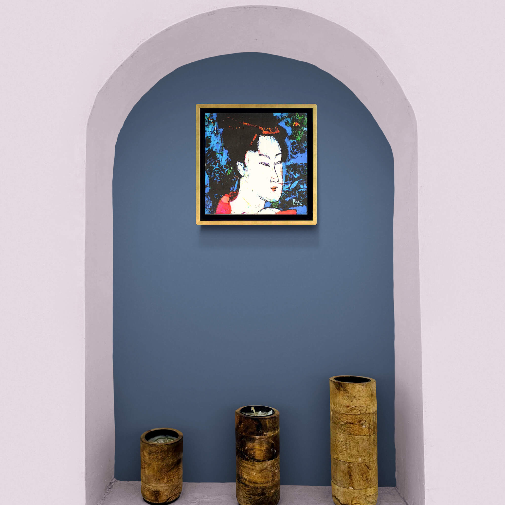 This series of Geisha paintings began by chance, rediscovered while leafing through an old book during an attempted clear-out.