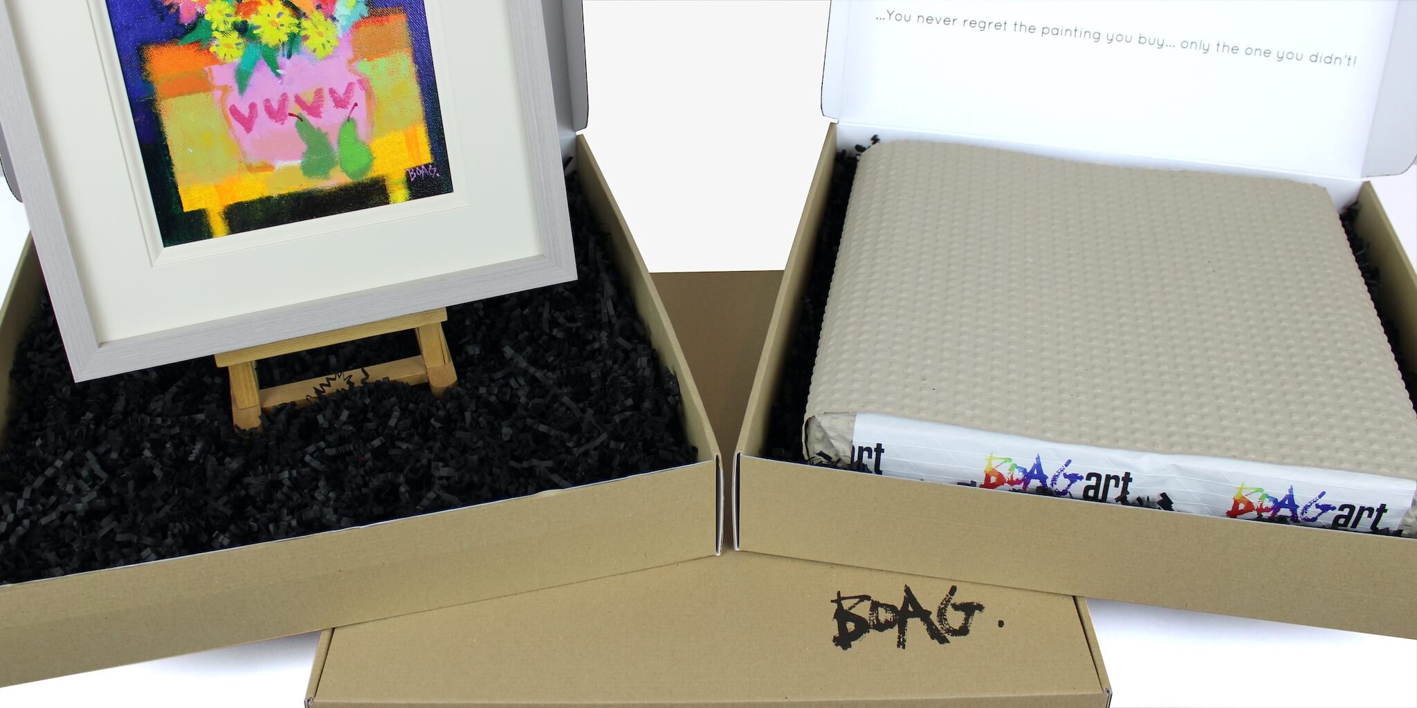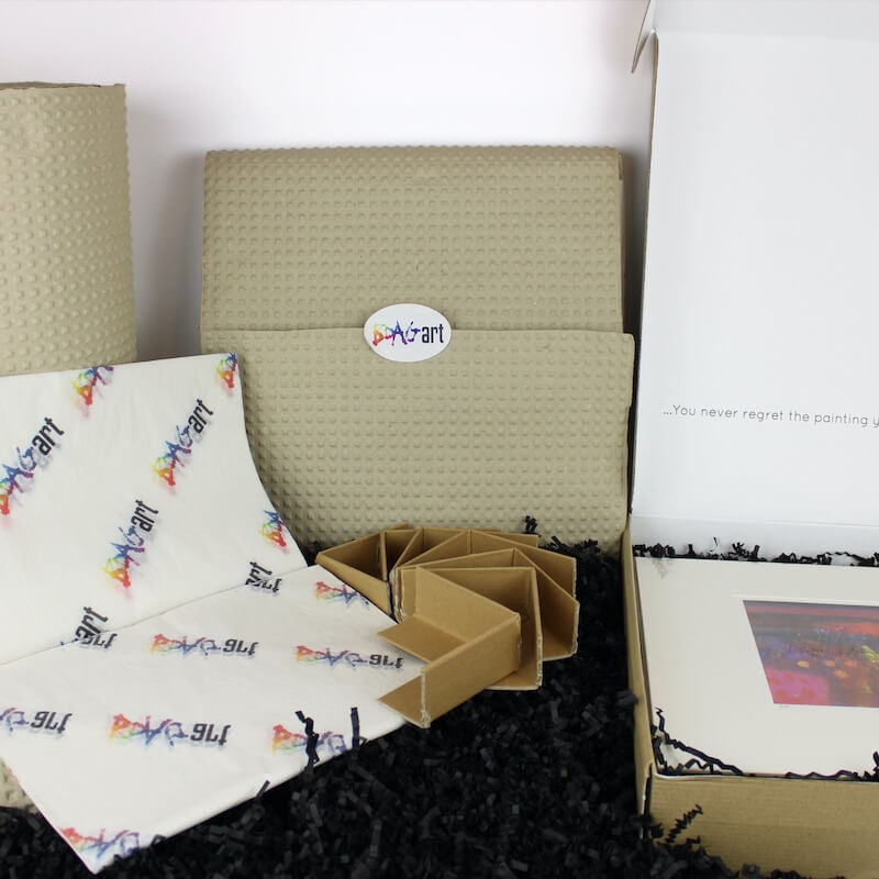 At Boagart Publishing, our prints and paintings are shipped in a special, custom-design mailer box that's hand signed by the Artist. Also, not content with just looking great, all our shipping materials have been specially selected to minimise the environmental impact of our products.